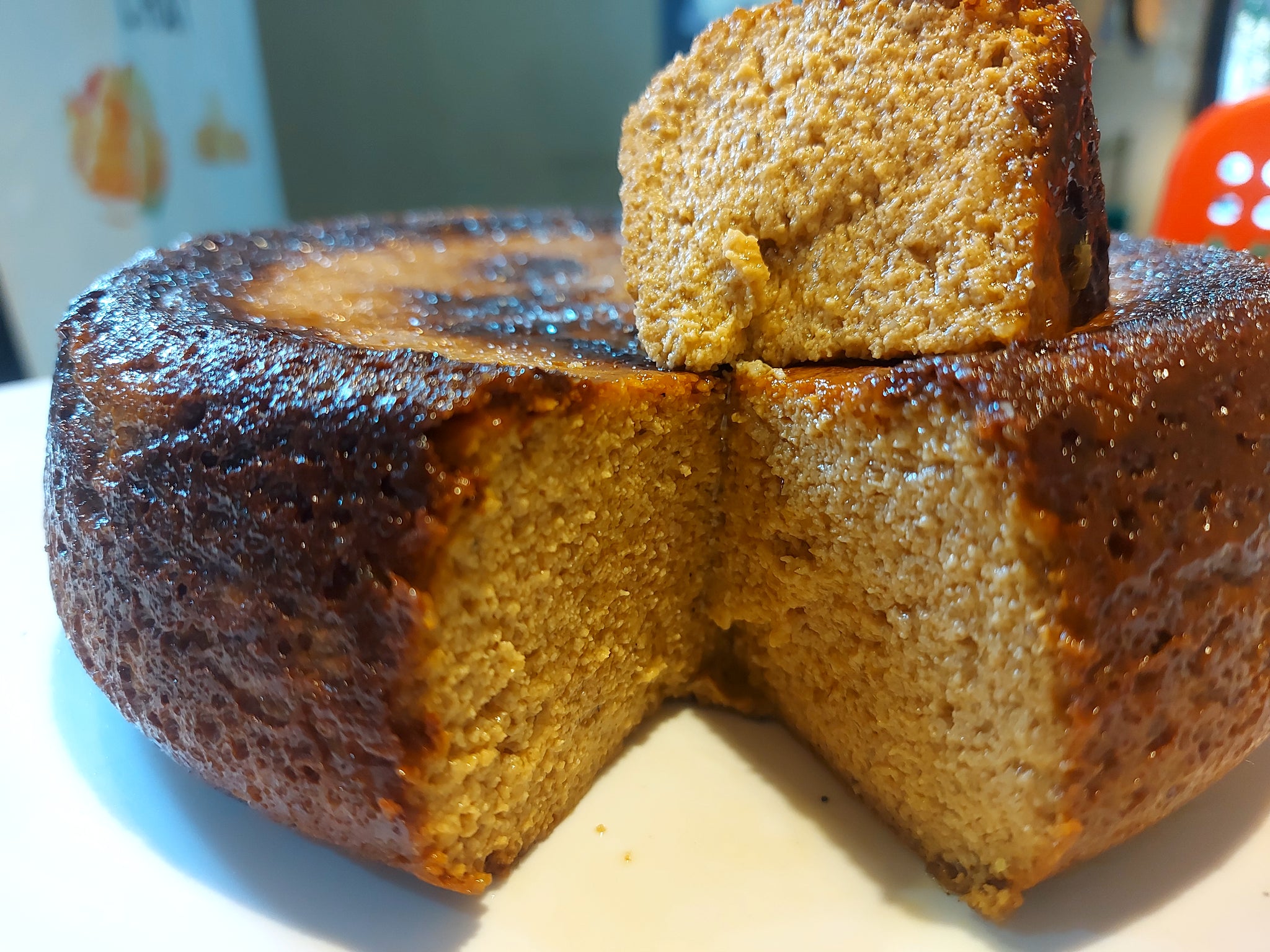 Chhena poda literally means Burnt Cheese in Odia, referring to its caramelised crust exterior and soft, spongy texture with slightly smoky notes. It is often described as the Indian counterpart to a cheesecake due to its rich, creamy taste and baking process